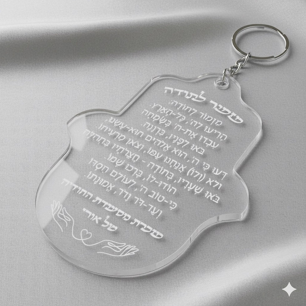 מחזיקי המפתחות שלנו מציעים מזכרת ייחודית ומרגשת עבור האורחים שלכם. עם מגוון רחב של עיצובים מותאמים אישית המתאימים לסגנון של כל אירוע, כמו חתונות, בר/בת מצווה וימי הולדת, כל מחזיק מפתחות נוצר באיכות גבוהה ומשלב אלמנטים מיוחדים. זהו פריט שמספק פונקציה מעשית וגם ערך סנטימנטלי, כך שהאורחים שלכם יזכרו את הרגעים היפים מהאירוע.